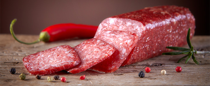 Our plant-based meatless salami slices are the must-buy meat alternative, a rich flavor and substantial texture that equals to real meat slices and visual identity speaks with a modern and wholesome feel, comes with spice-full variants for every fillings and slides of your deli choices. Our process made using a large diameter casing, and is typically it is a mildly flavored with black pepper, particularly in the form of whole peppercorns, mustard is used heavily in salami, and nutmeg is used in low levels. always smoked and heat treated to your preferences.!
