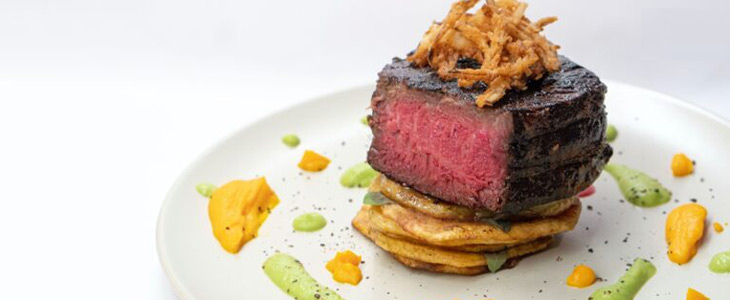 A perfect red-meat alternative steak made with rich protein sources of pea, fava and jackfruit combinations and formulations with a flat cut of parallel faces, usually cut perpendicular to the fibrous look. It is juicier, tender, loaded with flavor, and has a minimum amount of fat. Lean is the pale-red part of the plant-based meat.